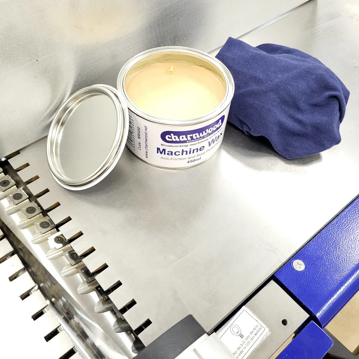 The Charnwood machine wax also has a built in anti-rust agent that will help protect your metal surfaces against corrosion.