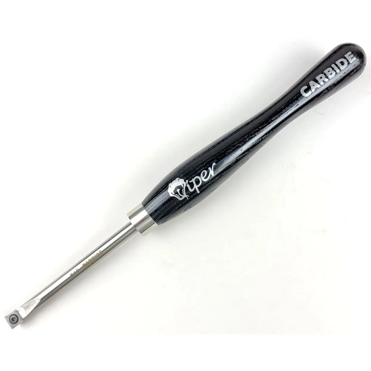 The handles are 220mm long and made from Ash. A distinctive stainless steel ferrule connects a 10mm diameter round shaft which is laser etched. On the end is mounted a Tungsten Carbide (TC) cutting tip. The 3 razor sharp cutting tips have different shapes to achieve different types of cut. Carbide cutters are presented to the timber at 90 degrees and cut with a scraping action. This is a much simpler skill to learn when compared to using a traditional bowl gouge, which is what makes it especially suitable for beginners.
