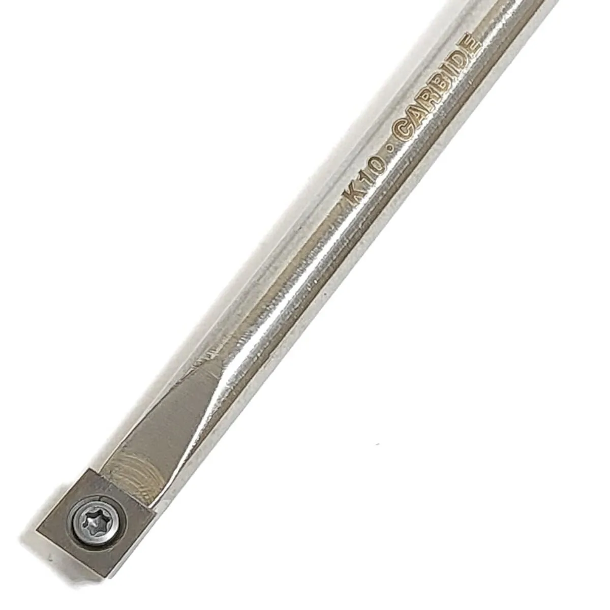 The round steel shaft sits comfortably on the the tool rest. It is 10mm diameter with enough strength to eliminate vibration from the cutting tip.